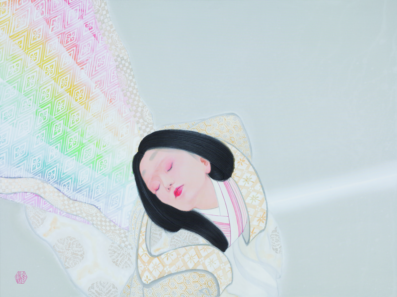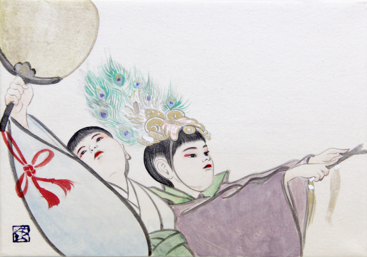 和紙、岩絵具、水干絵具、墨