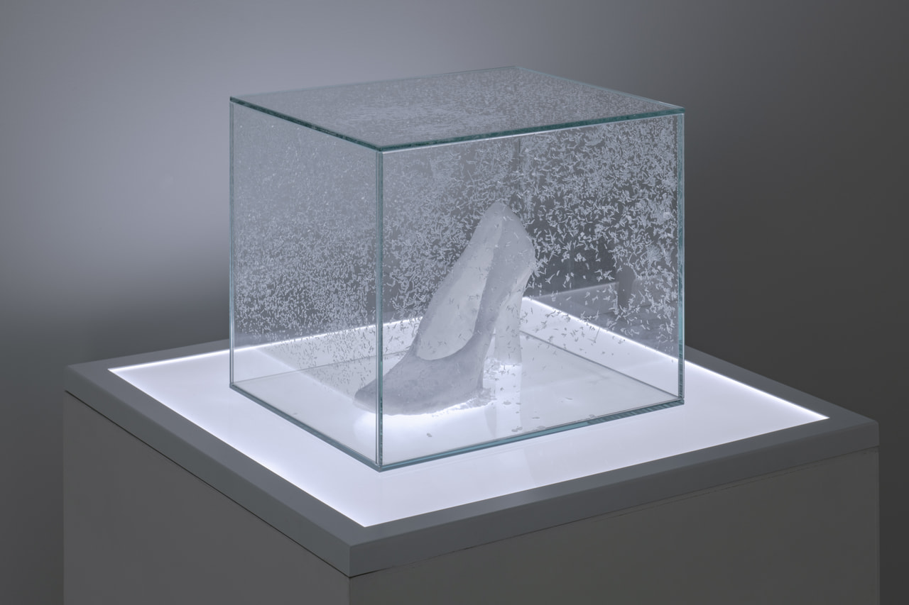 Aiko Miyanaga was born in Kyoto in 1974. She received a BA in Sculpture from Kyoto University of Art and Design in 1999 and an MA in Inter-media Art from Tokyo National University of Fine Arts and Music in 2008. The artist is popular for her works that visualize time using traces of presence, such as objets made from naphthalene in the shape of everyday items, and installations incorporating salt, the veins of leaves, and the sound of the kannyu hairline cracks forming in pottery glaze. The objets made from naphthalene, which sublimes at room temperature, are iconic examples of this aspect of her work. They have a pliable existence, changing over the passage of time, with the naphthalene recrystallizing within the case.