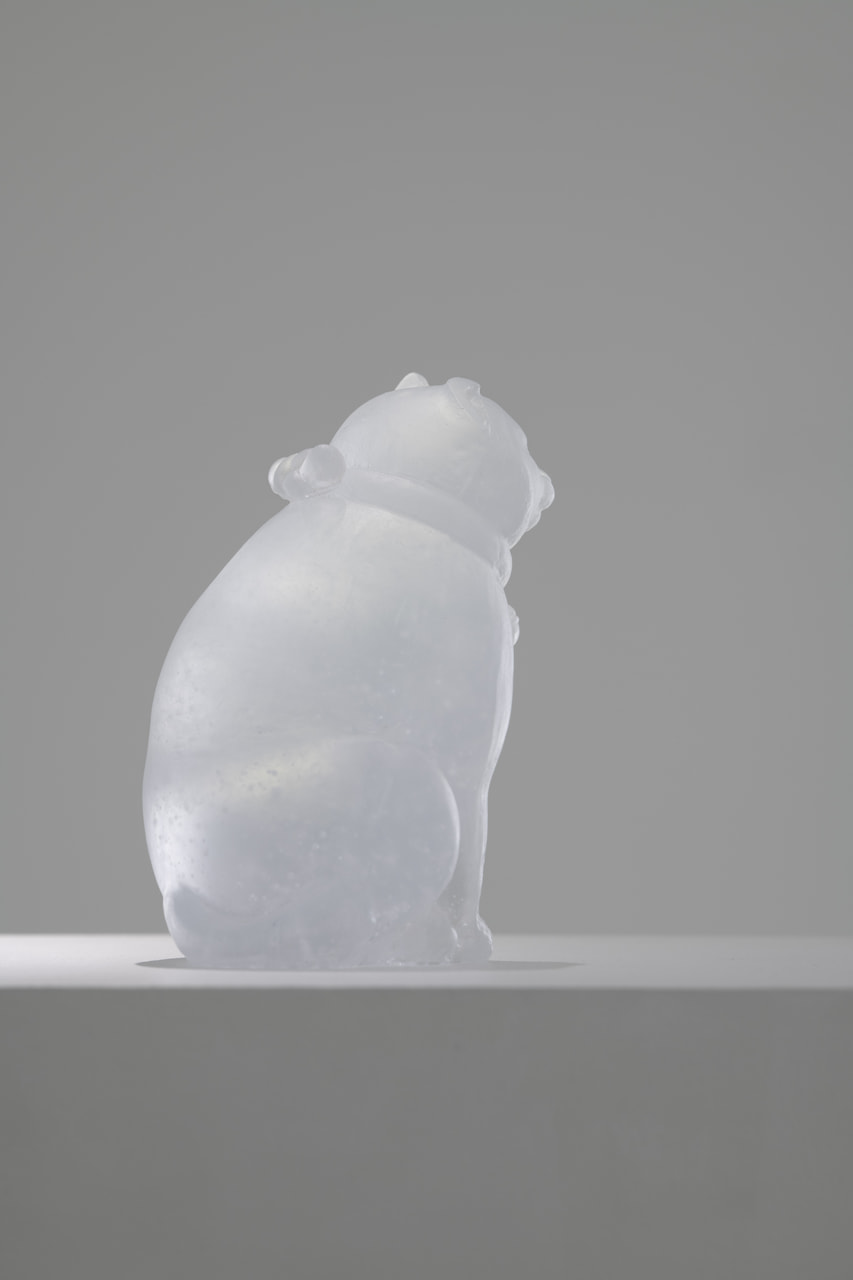 Having returned to Kyoto—where she was born and raised—for the first time in about sixteen years, she has started to create new works. Living in Kyoto often leads to noticing the existence of things that have been handed down unchanged from generation to generation. Many of the plaster molds that were used back when Miyanaga's great-grandfather opened the Miyanaga Tozan pottery studio remain there today. They had been there when she was a child, but she had never paid much attention to them. Now, she wonders about the images that lie dormant in the recesses of those molds. Where parts are missing, she fills the depressions—or valleys—of the molds with glass, giving form to the absence of those parts (space) before releasing the product from the mold to see the result. Miyanaga explains that it's like going back to visit the past. Most of the figurines that were created from these molds no longer exist today. But the heft of the piece in one's hand makes one feel that history still sleeps within them.