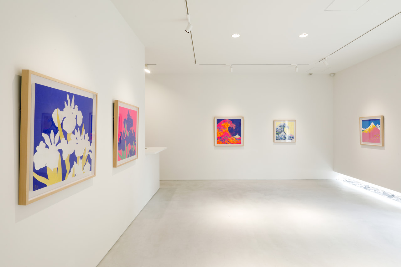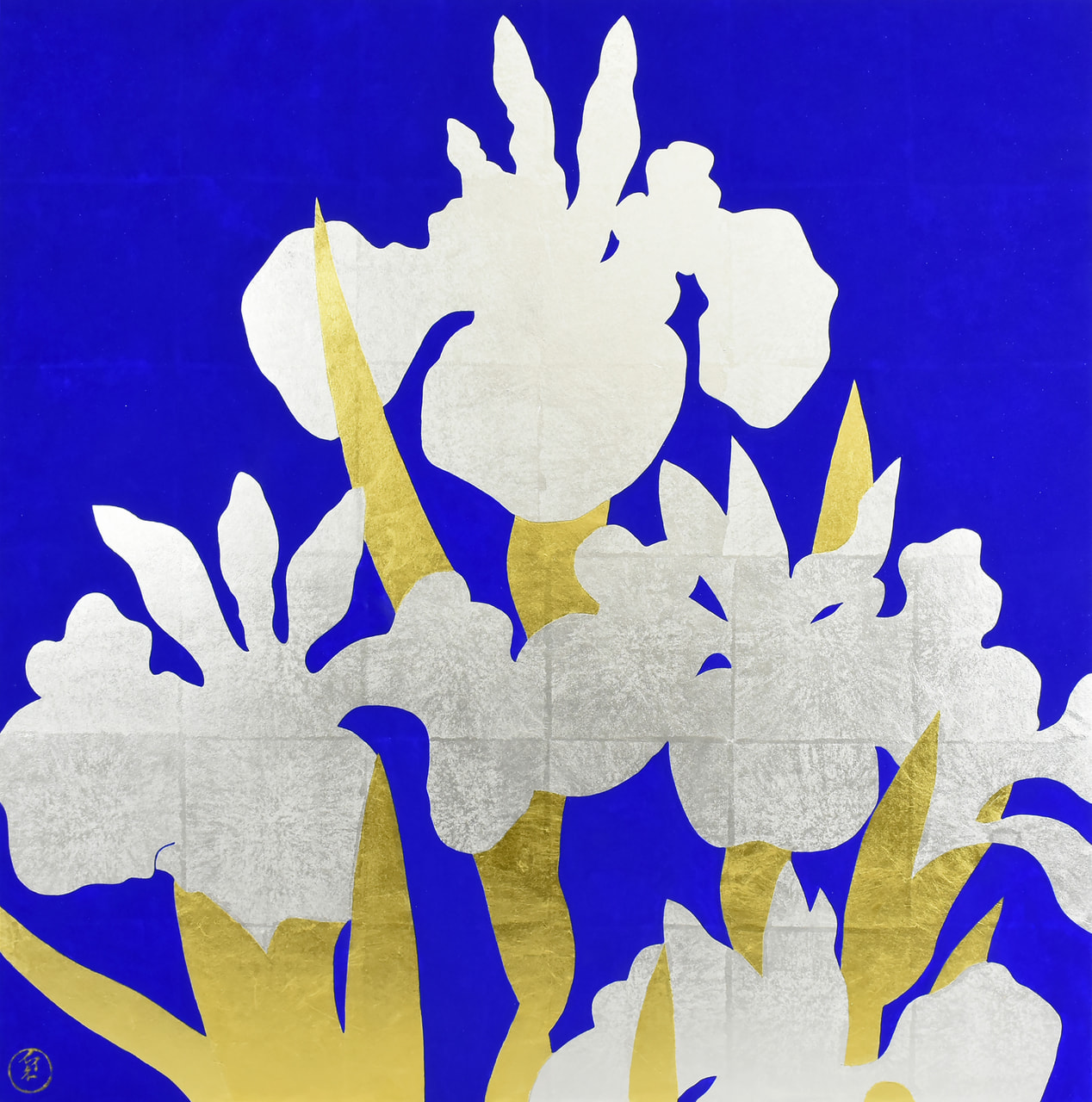 This exhibition presents the artist’s NEO UKIYOE works along with his new Flowers Iris series, inspired by the folding screen masterpiece Irises by Ogata Korin, who is known for perfecting the Rimpa style. Yamamoto aims to incorporate a contemporary sense of color and design into motifs that are very familiar to Japanese viewers, featuring irises, groups of plants with deep blue and bluish-green colors, rhythmically arranged in ornate pictures in which lavish use is made of gold leaf.