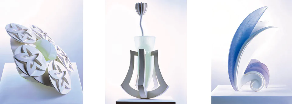 (左)田嶋悦子《Cornucopia 99-X》1999年、富山市ガラス美術館所蔵、撮影:斎城卓