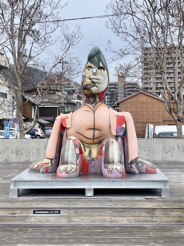 広島県尾道市にある商業施設「ONOMICHI U2」前のオリーブ広場に、2020-23年にかけて、公益財団法人滋賀県陶芸の森の招聘事業であるアーティスト・イン・レジデンス・プログラムで日野田崇が制作した《立ち止まる人》が設置されております。