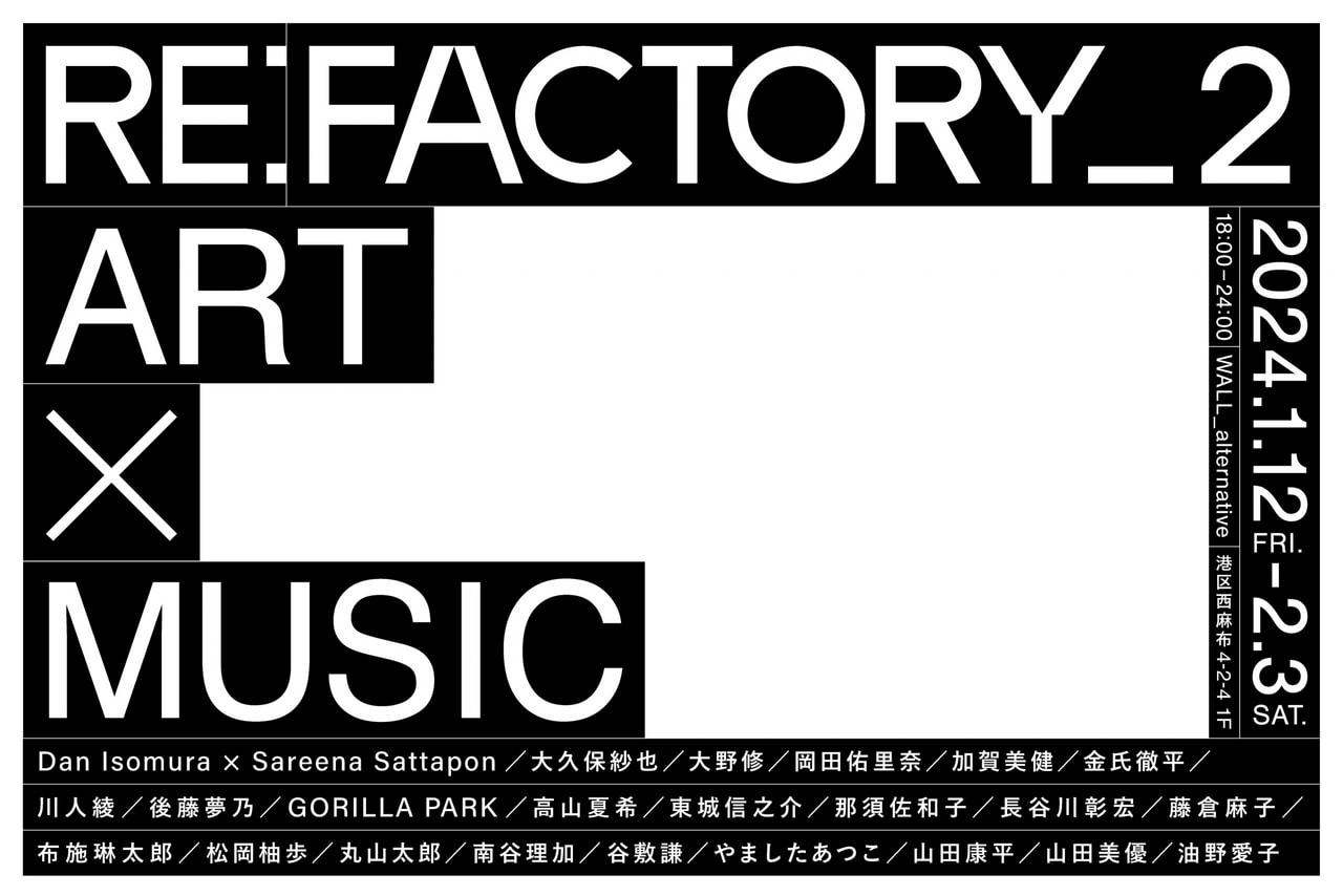 2024年1月12日より開催する「RE:FACTORY_2」では、前回のコンセプトを引き継ぎ、ACAが企画・運営するYouTube番組「MEET YOUR ART」 にご出演いただいたアーティスト23名の方々に、“音楽”からインスピレーションを得て制作した新作を中心にご出展いただき、それぞれの作家の音楽にまつわるテキストともに展示・販売します。また、場所を東京・西麻布にオープンした「WALL_alternative」に移すことで、「WALL_alternative」と「音楽」を入り口に、今までアートに触れる機会のなかった方を含めた多くの方々に、アートと参加アーティストを知っていただく機会の創出を目指します。