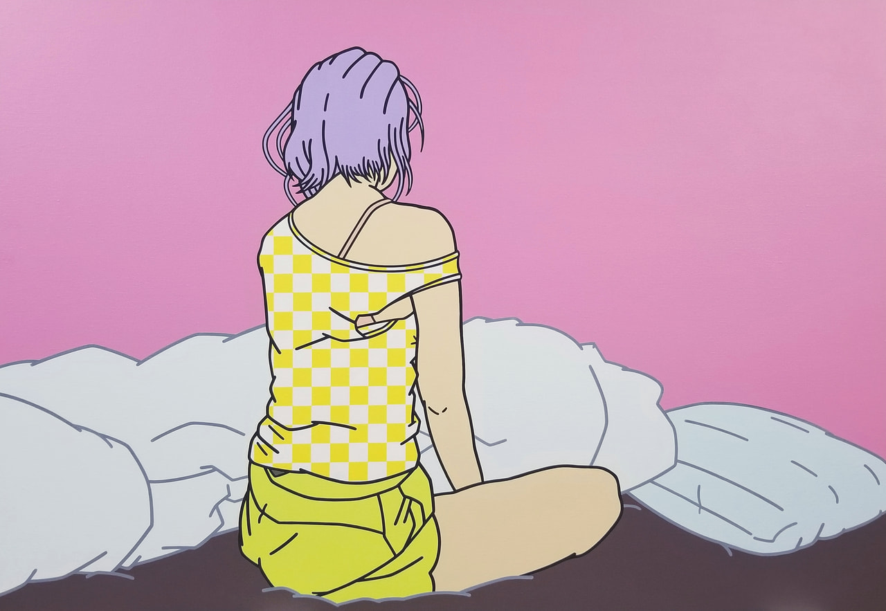 展示作品:極並佑《HONEY(HELLO MY POPS HERO OG)》アクリル、キャンバス/ acrylic on canvas 80.3cm×116.7cm 2021