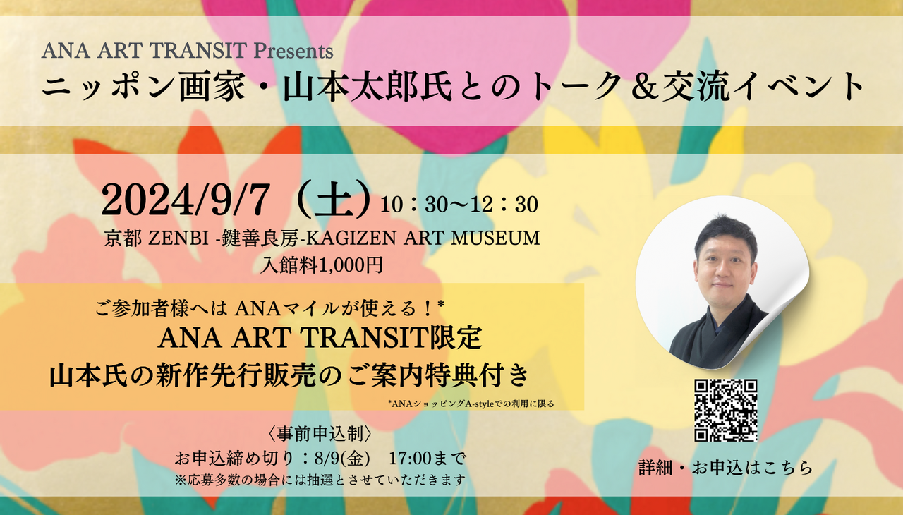 8月6日よりZENBI -鍵善良房-にて開催される「琳派リフレイン−山本太郎と芸艸堂」の関連イベントとして、「ANA ART TRANSIT Presents ニッポン画家・山本太郎氏とのトーク&交流イベント」が実施されることとなりました。